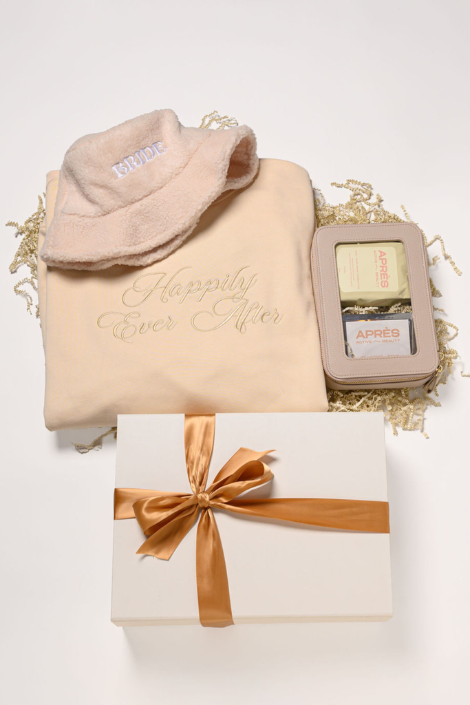 For the bride who’s glowing from “yes” to “I do,” the Happily Ever After Winter Box is a dreamy collection of elevated essentials designed for comfort, celebration, and self-care. Perfect for engagement season, wedding prep, or the honeymoon unwind, every piece blends modern luxury with bridal charm.