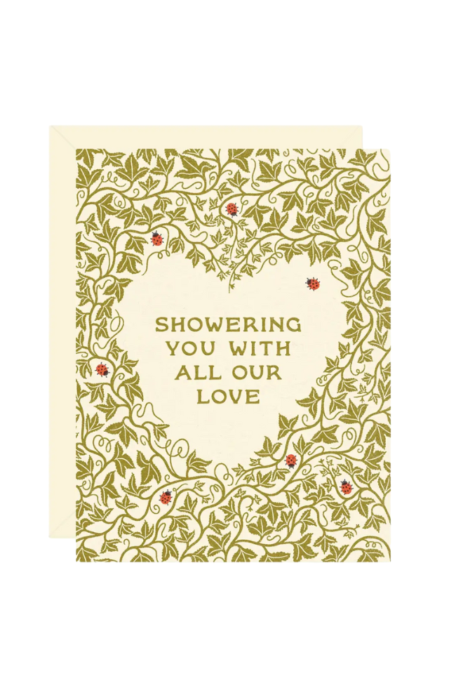 Perfect for any bridal, wedding, or baby shower. Blank Interior. Includes a coordinated envelope and cello sleeve. Designed and made in Philadelphia.