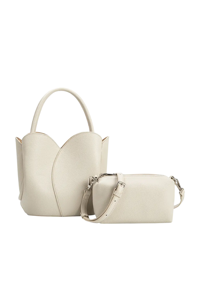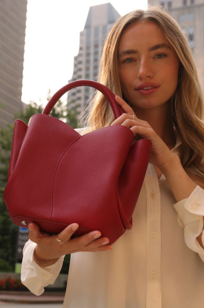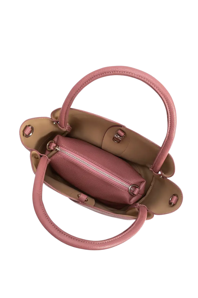 Recycled Vegan Leather; silver-tone hardware and snap hook closure.