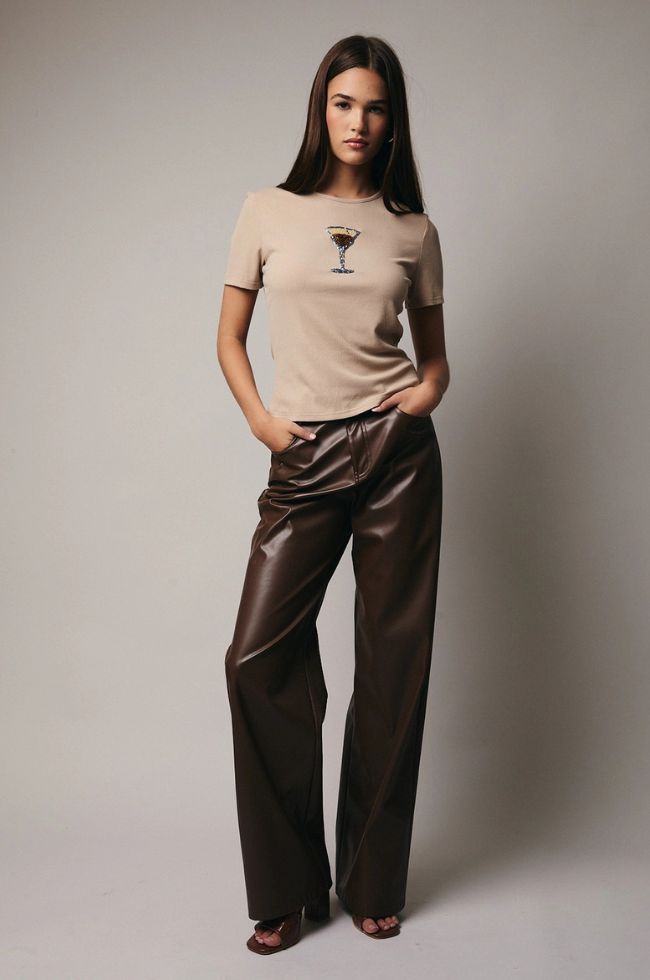 This playful top features soft, stretchy ribbed knit fabric and a sparkling beaded espresso martini detail.