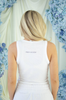 This crisp white ribbed tank features a delicate "happily ever after" script in a dreamy blue. It’s the ultimate lightweight layer for your honeymoon morning coffee or getting ready with your bridesmaids on the big day.