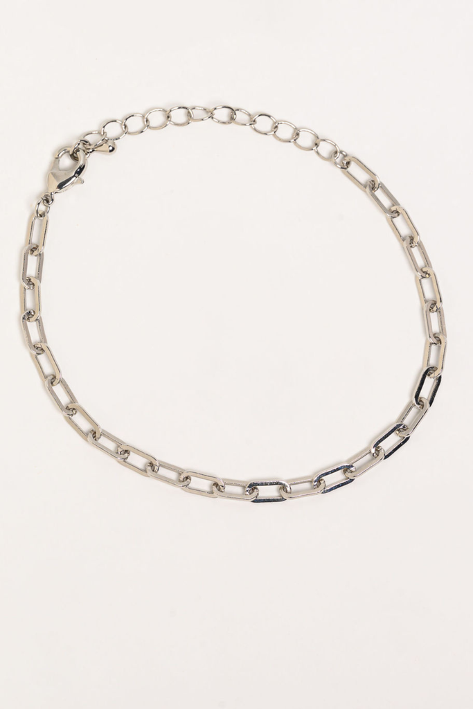 This Silver Small Link Paperclip Bracelet is Rhodium Plated.