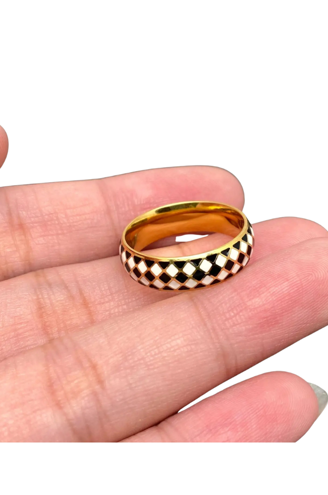 Water Resistant Enamel Checkered Ring