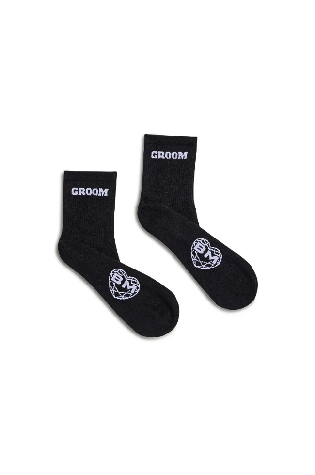 Knitted GROOM logo on each side of the sock. One size fits most (Men's 7-11). Crew length.